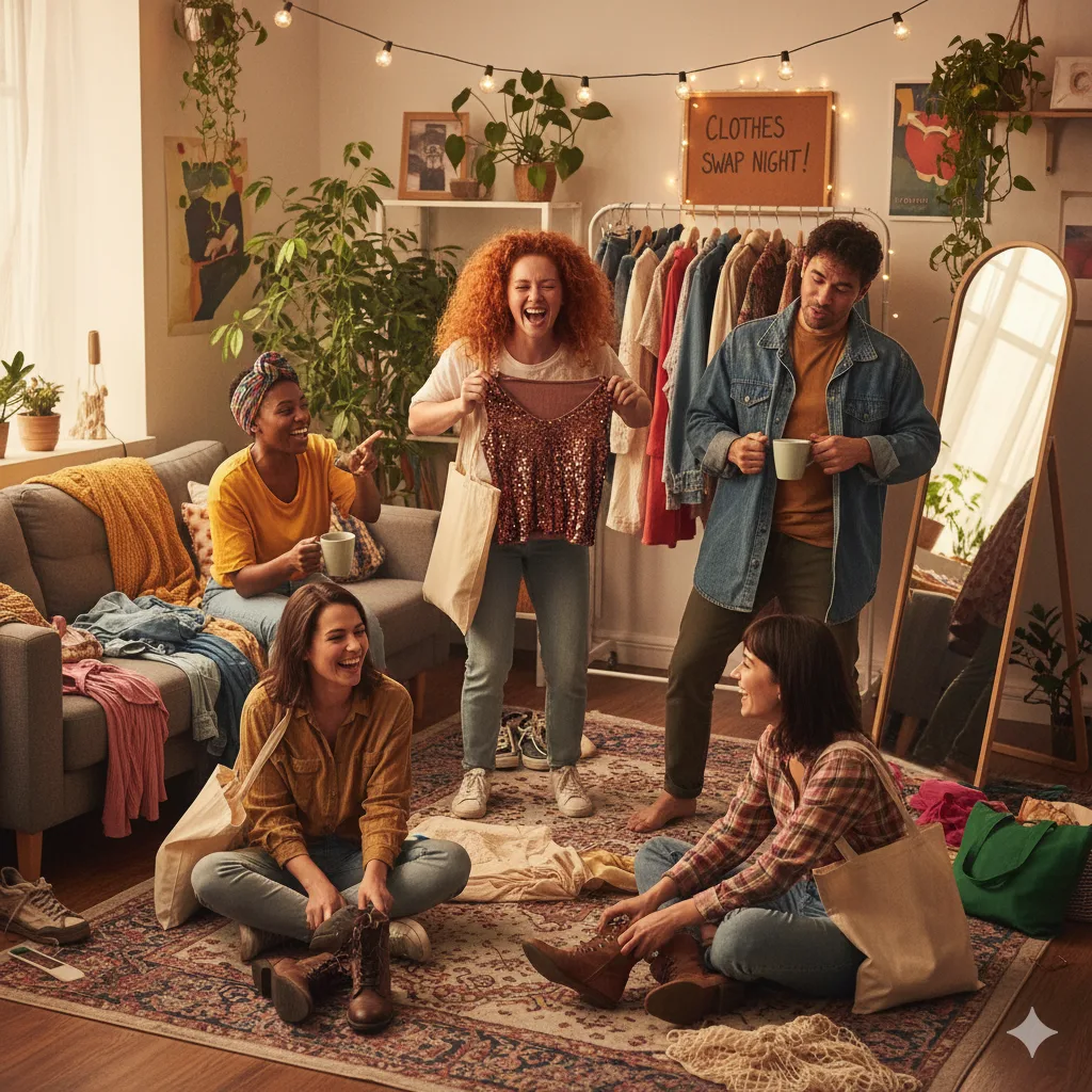 Host swap nights: Clothes, books, or tool swaps with friends.